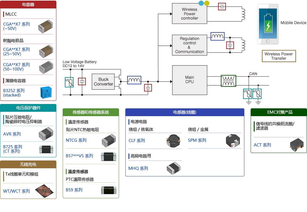 从TDK集团的产品群中介绍汽车舒适的"无线充电"相关合适的产品。