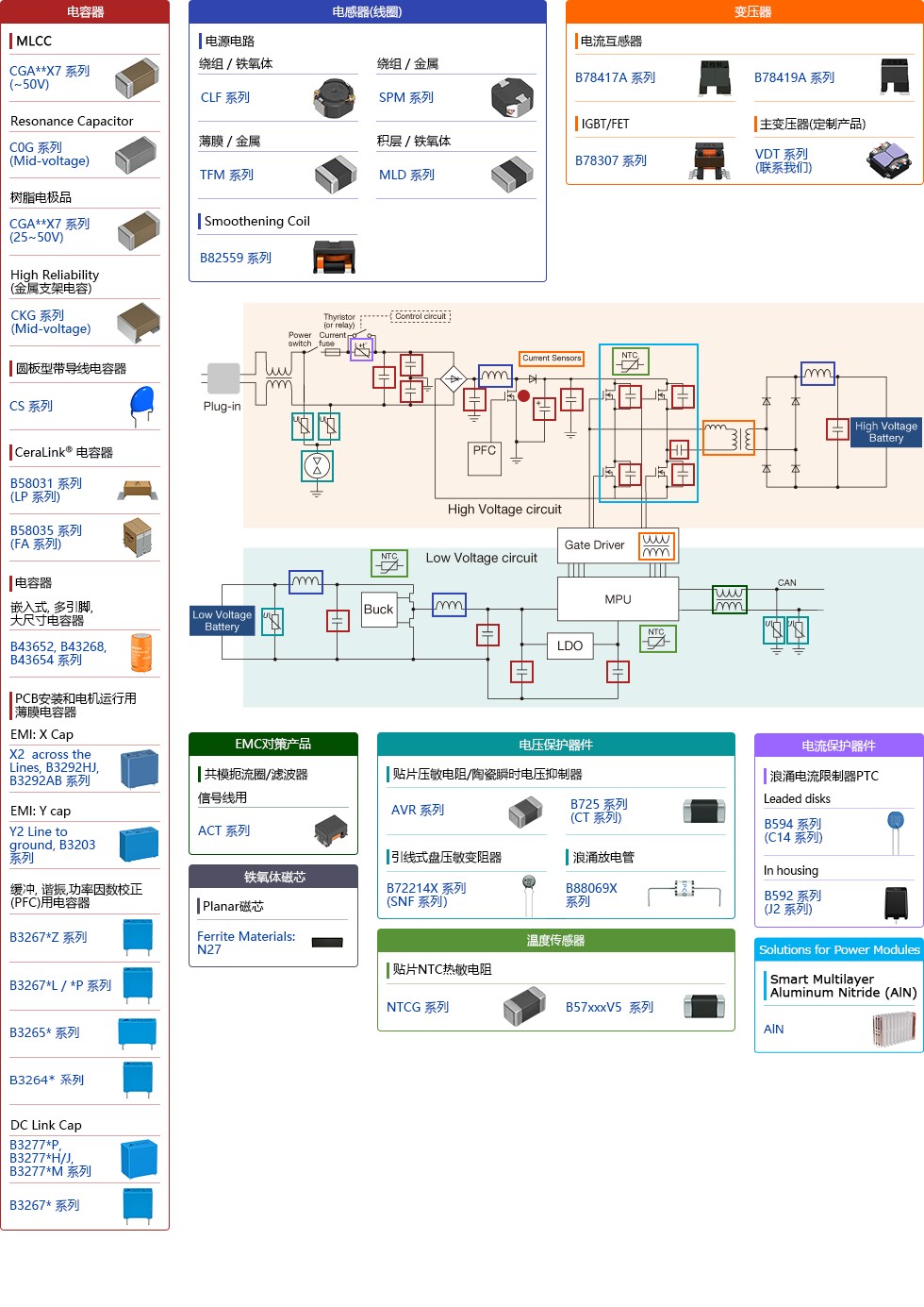 从TDK集团产品群中介绍xEV"板载充电器"相关合适的产品。