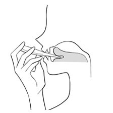 3 舌で体温計を押さえて口を閉じ、測定位置がずれないように、体温計を手で押さえる