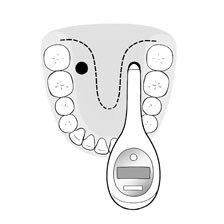 2 表示部に「Lo」が表示されたら、舌の付け根の左右どちらかに測定部を当てる