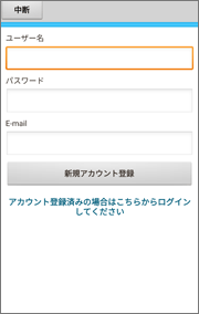 3 ユーザ名、パスワード、メールアドレスを入力して「新規アカウント登録」をタップしてください