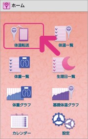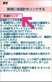「体温計リンク」をすると、体温計からスマートフォンへ体温データの転送ができるようになります。(初回のみ)