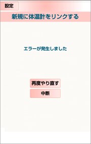 ※「エラー画面」が表示された場合は、「再度やり直す」をタップし、体温計の電源を切った後、2の手順からやり直してください。