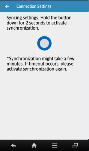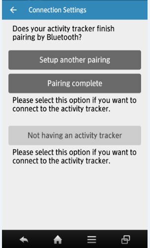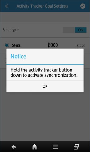 (2) When the screen below is displayed, press the side button of the activity tracker for 10 seconds or longer, until the LED starts blinking blue, with a white light revolving around it.