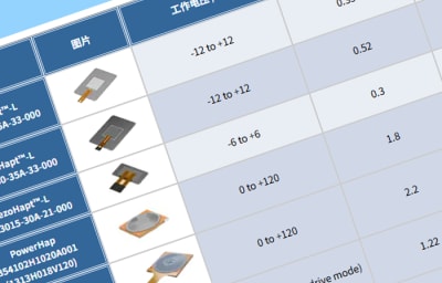 PowerHap执行器 产品首页 型号名单 产品目录 技术注释 技术支援工具 技术注释 选型指南 压电型触觉反馈执行器 产品和技术 PowerHap开发入门套件让您深入了解触觉反馈产品 2023年9月6日 应用和实例 应用注释 元宇宙有望调动用户五感 2023年4月11日 适合新型汽车应用的传感器 2023年2月20日 通过触摸实现真实感的Piezo(压电)触觉反馈设备 2020年9月3日 提高数字驾驶室安全性的设备 2019年11月23日 触,动人心! 2019年7月31日 助力工业4.0 2018年12月19日 其他内容 以触觉提升驾驶安全性:路况比屏幕更值得关注